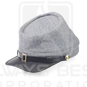 KEPI GREY WOOL WITH 2 CSA SMALL BRASS BUTTONS & WITH LEATHER BAND & PIPING PICK SIZES S,M,L,XL & XXL