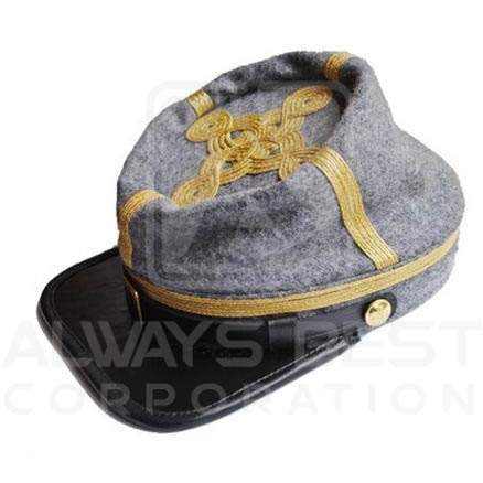 CS OFFICER KEPI GREY WITH 4 ROW GOLD BRAIDS WITH 2 CSA SMALL BRASS BUTTONS & WITH LEATHER BAND & PIPING PICK SIZES S,M,L,XL & XXL