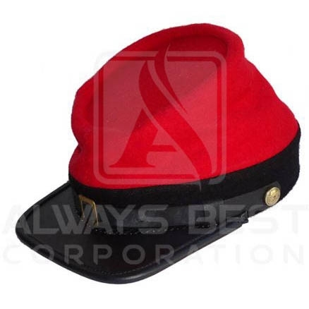 CS KEPI RED WITH BLACK BAND WITH 2 CSA SMALL BRASS BUTTONS & WITH LEATHER BAND & PIPING PICK SIZES S,M,L,XL & XXL