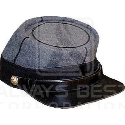 US 7th New York State Militia Kepi Grey With Black with 2 CSA Small Brass Buttons with Leather Band & Piping Pick Sizes, S,M,L,XL,XXL