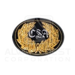 HAT BADGE C.S STAFF OFFICER WITH CSA IN SILVER WITH GOLD WREATH BLACK BACK SMALL SIZE HAND EMBROIDERED