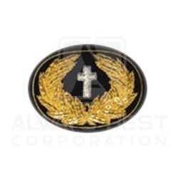 HAT BADGE CHAPLAIN WITH SILVER CROSS WITH GOLD WREATH BLACK BACK SMALL SIZE HAND EMBROIDERED