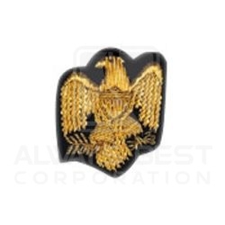 HAT BADGE MOUNTED OFFICER SADDLE BLANKET CHEVRAC EAGLE IN GOLD BLACK BACK SMALL SIZE HAND EMBROIDERED